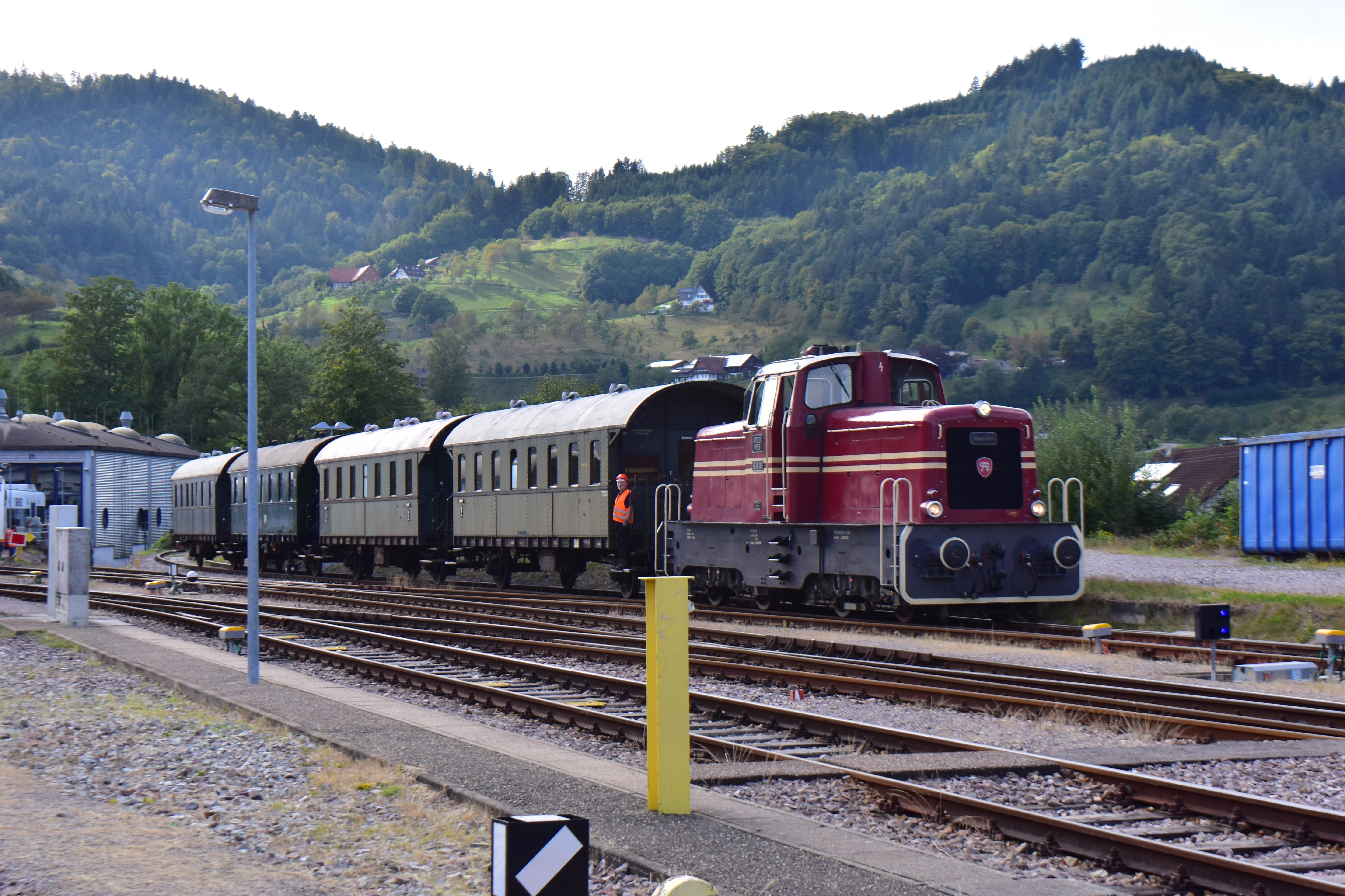 … sie ist wieder da – zumindest für einige Tage – die gute alte V70, wie sie jahrelang Alltagsbild im achertäler Güter- und Personenverkehr war. Und was bringt sie uns mit? Richtig! Die Personenwagen, in welchen am kommenden Sonntag unsere Fahrgäste im Dampfzug durch die Landschaft fahren werden!