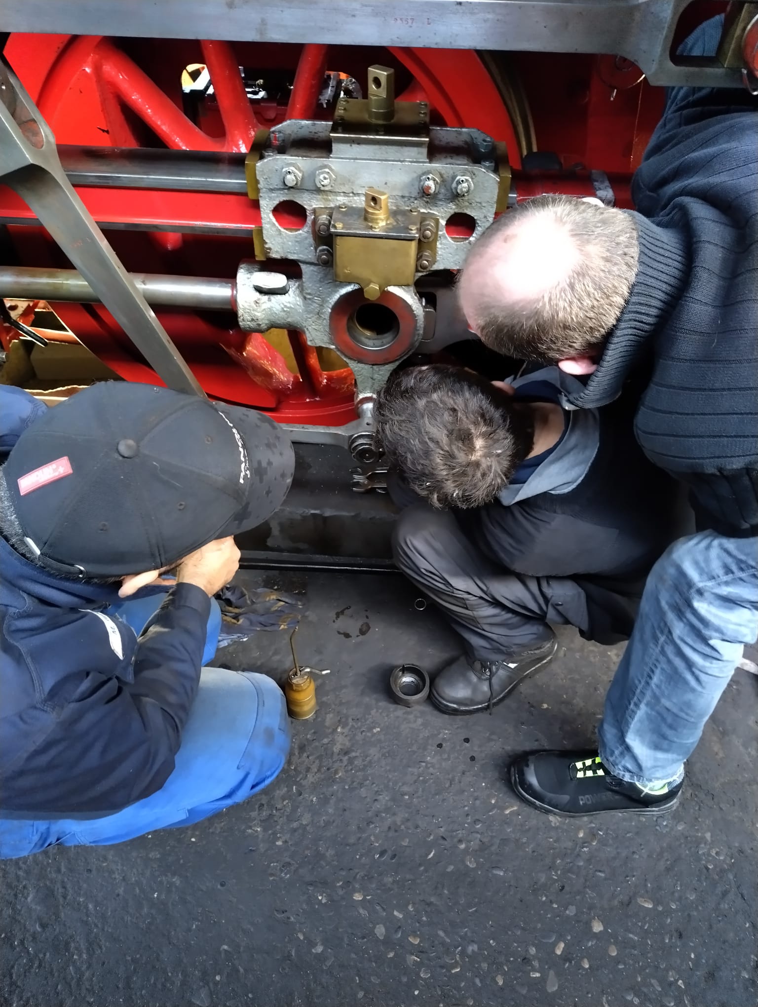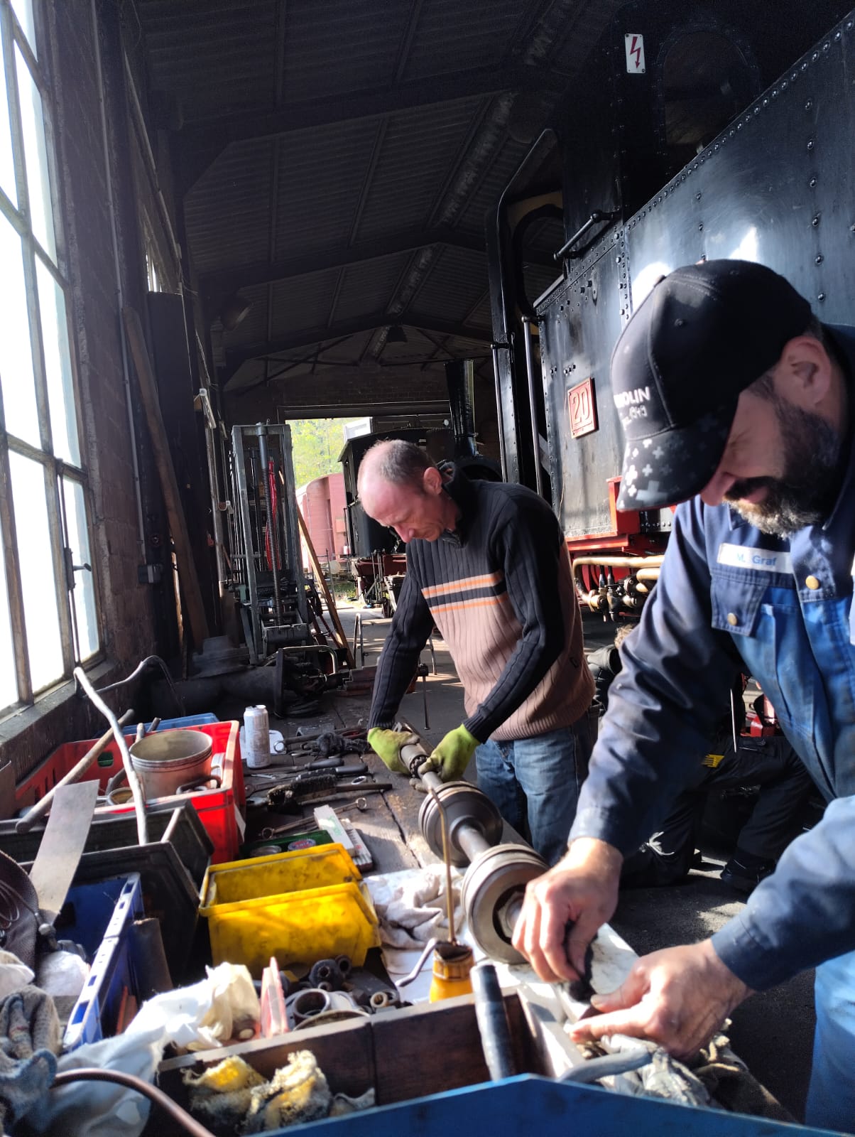 Die neu aufgearbeiteten und für in Ordnung befundenen Bauteile konnten so durch eine tolle Team-Arbeit wieder zur Lok zusammengefügt werden, sodass sie nun wieder mehr und mehr wie eine richtige Dampflok aussieht. So sind die wohl markanteste Veränderung, die den Fortschritt der Arbeiten dokumentieren, die Treibstangen und Schieber. Aber auch etwas weniger sichtbare Arbeiten konnten erledigt werden, wie z.B. die Voreinstellung der Bremse und die Installation dortiger Kleinteile. Alles in allem ein äußerst erfolgreicher Werkstatt-Samstag!