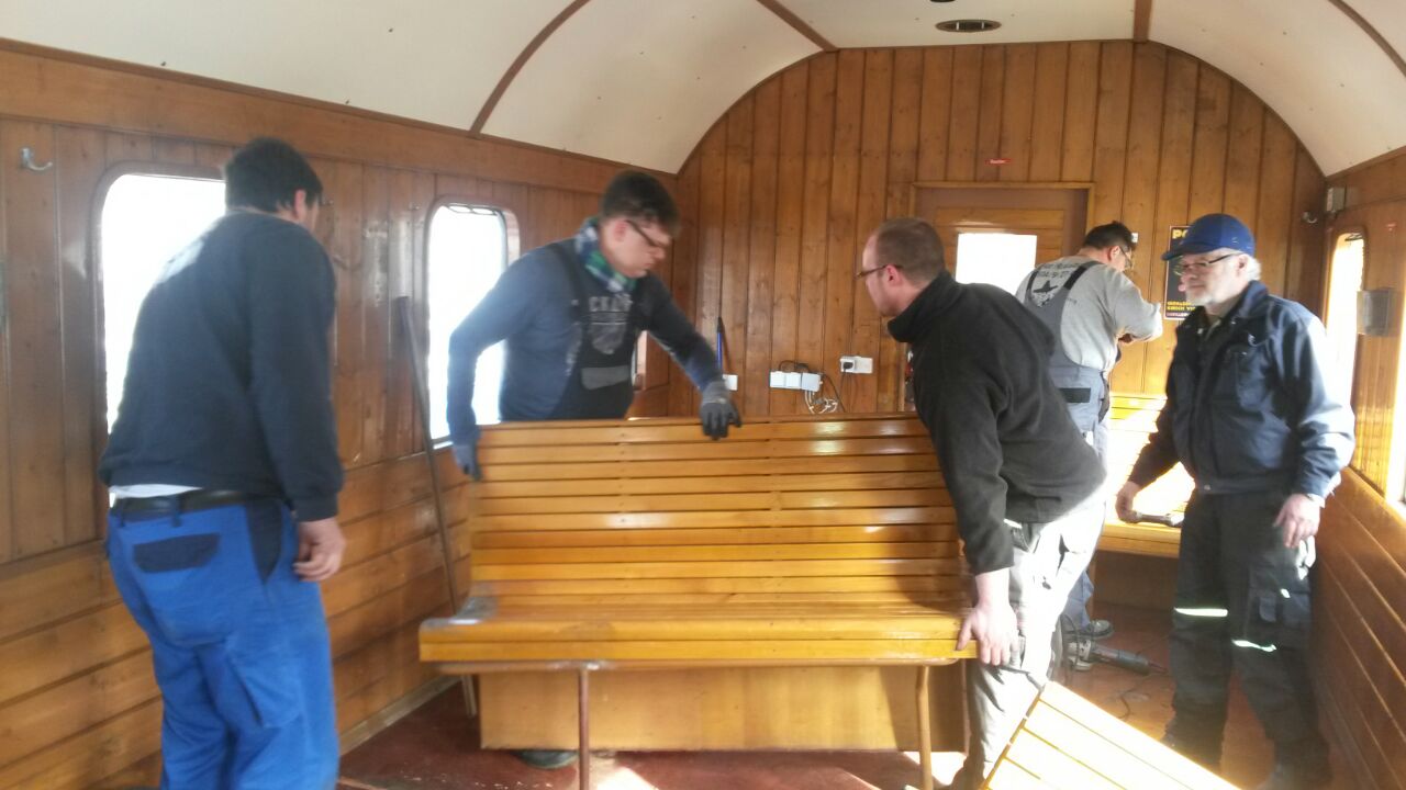 Am Ci 26 (Donnerbüchse) haben wir die Bar ausgebaut und anschließend alle Sitzreihen umplatziert. Nach bisher unzumutbar beengter Beinfreiheit ist jetzt nicht nur erheblich mehr Platz zwischen den Sitzen sondern auch noch ein Platz für 2 oder 3 Kinderwagen entstanden.