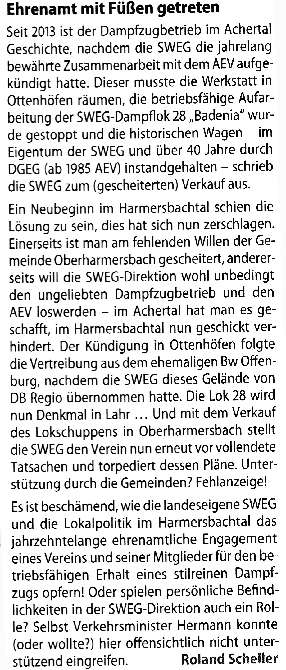 Kein Dampfzug im Harmersbachtal - Projekt gescheitert bevor es begonnen hat