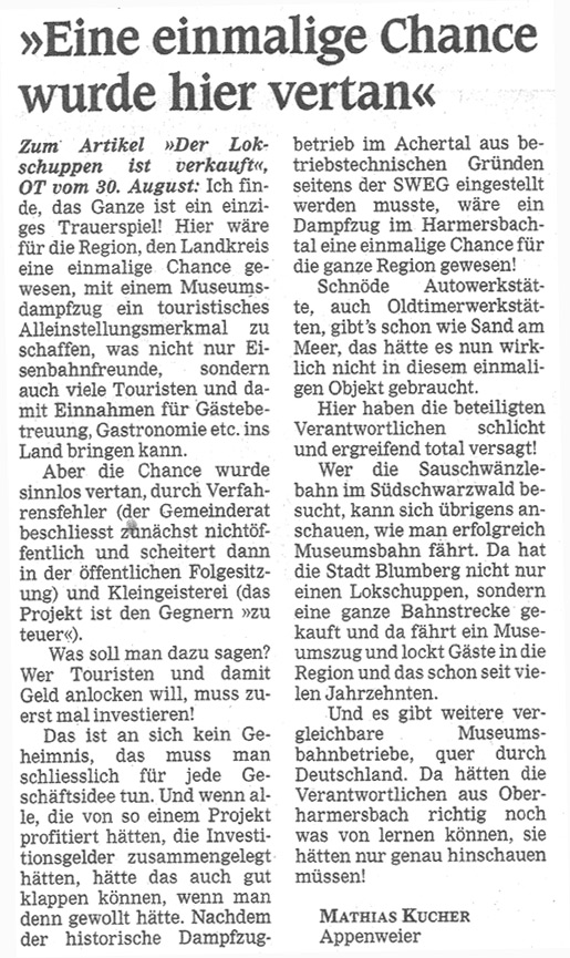 Leserbrief Mittelbadische Presse