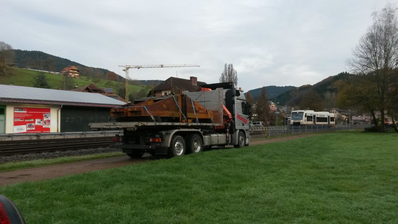 Nachdem das Projekt „Dampfzug im Harmersbachtal“ leider gescheitert ist, wurde vor einer Woche von der SWEG erklärt, dass die vereinseigenen Hebeböcke von deren ehemaligem Grundstück, beim Bahnhof Oberharmersbach-Riersbach, entfernt werden müssen, da diese ansonsten durch den neuen Besitzer verschrottet werden würden. Dieser wünschte ein besenreines Grundstück von der SWEG übernehmen zu können.