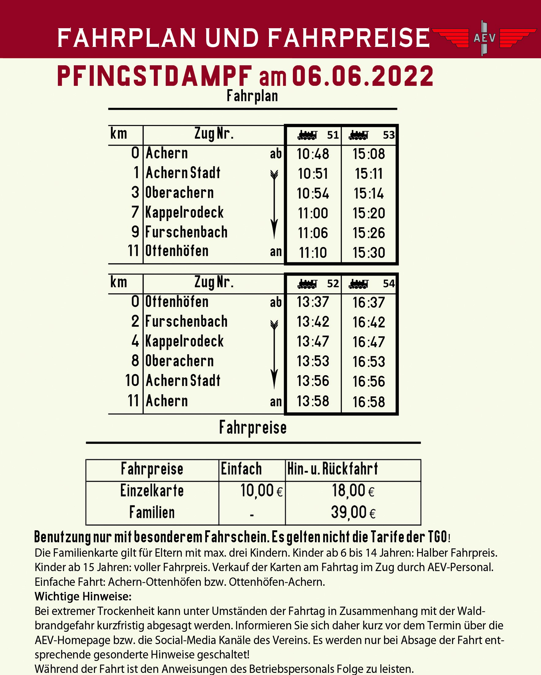 Fahrplan und Termine für den 06.06.2022 im Achertal