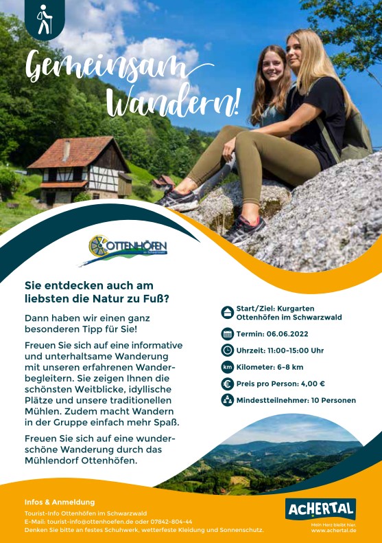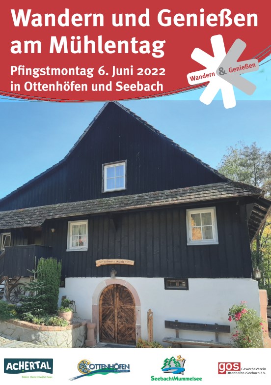 Am Mühlentag sind zahlreiche Mühlen in Ottenhöfen und Seebach zu besichtigen, mehr auch unter der Touristinfo Ottenhöfen oder Seebach. Entdecken Sie außerdem das Achertal nach oder vor der Dampfzugfahrt zu Fuß auf einem der zahlreichen Wanderwegen: