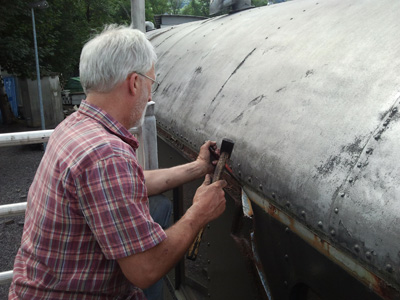 Das Dach war undicht und an einigen Stellen mehr als porös. Eingedrungenes Schwitzwasser ließ das Blech von innen heraus korrodieren. Die betroffenen Stellen wurden mittlerweile herausgetrennt und durch passende Flicken ersetzt.