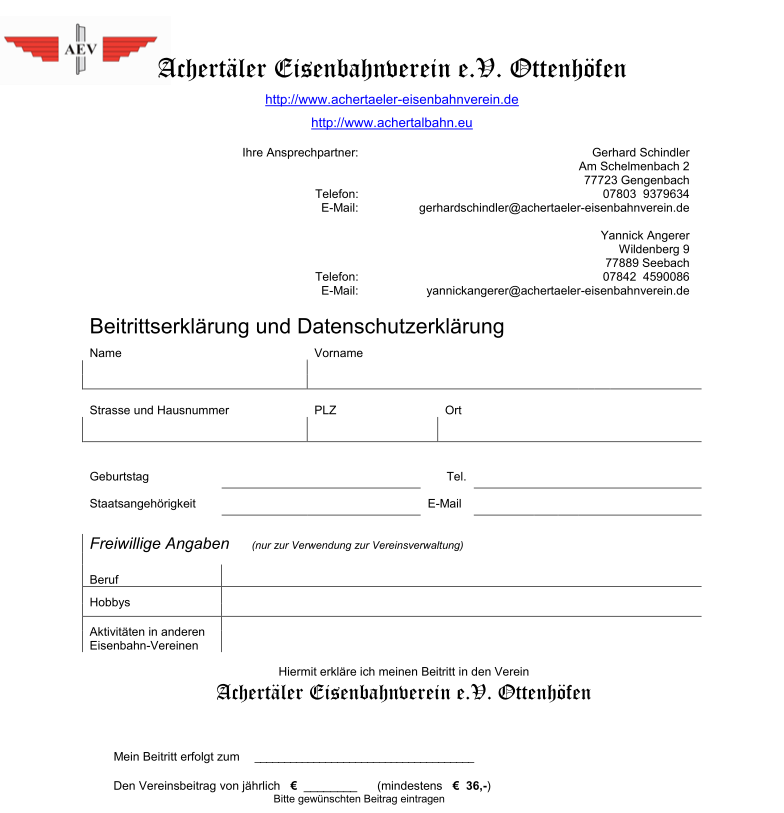 Bitte senden Sie die nachstehende Beitrittserklärung an